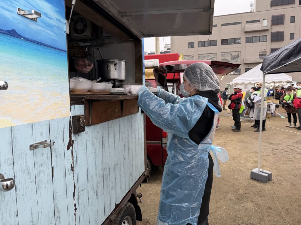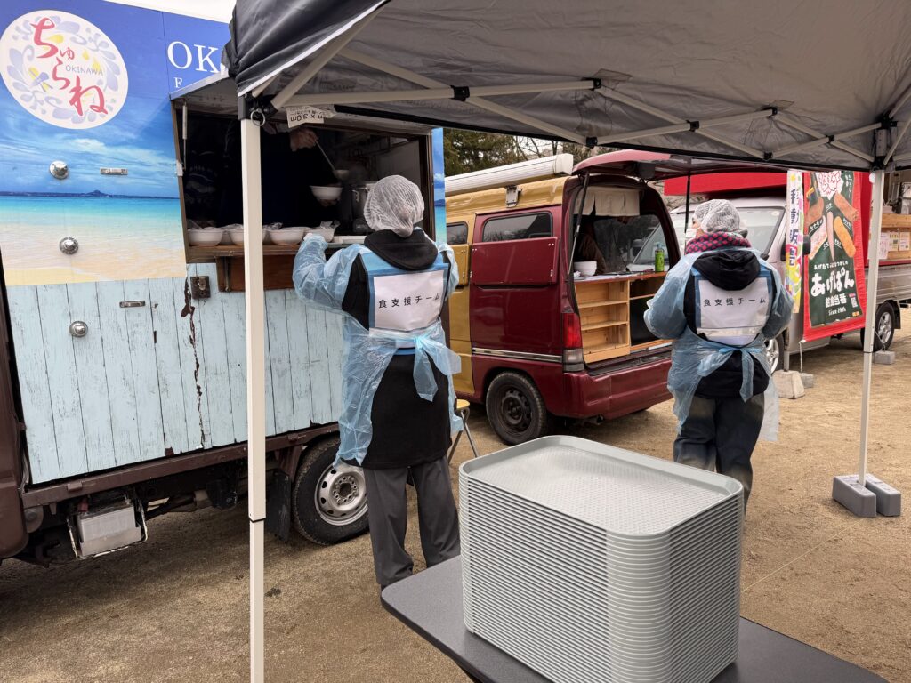 調理については「70〜80%のエネルギーで無理なく継続的に支援する」ことを意識し、複数台のキッチンカーで調理を分担する体制を前提としました。