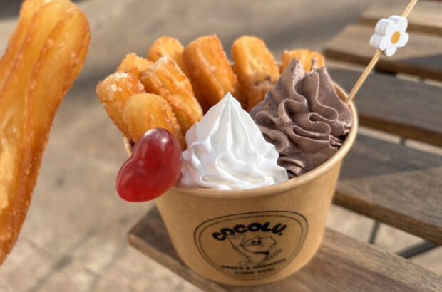 パリパリ生地のクレープと揚げたてのディップチュロスをご提供いたします!