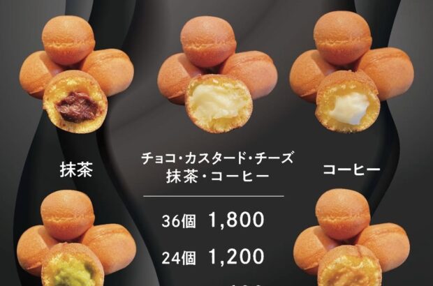 ベビーカステラでは珍しく、プレーンの他にカスタード、チョコ、チーズ、抹茶、コーヒーのクリーム入りがあります!