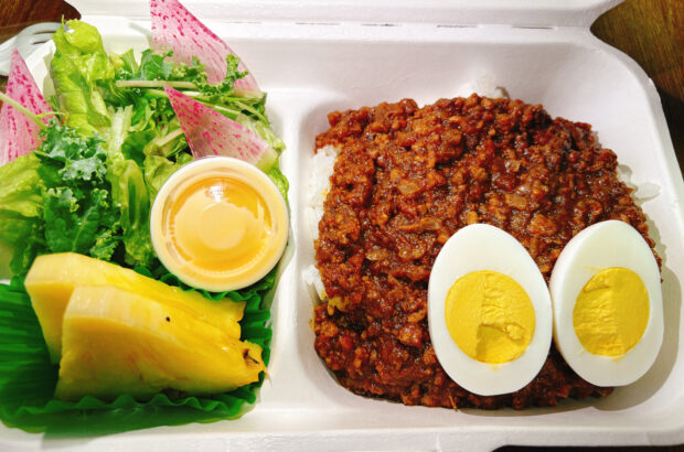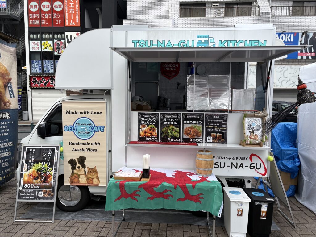 創作ダイニングから始まった独自の味付けでモチコチキン、味噌漬けポーク、チキンソテー、ハンバーグ、キーマカレーと食事提供とチュロスやオーストラリアのデザートを提供するニンジャのようなキッチンカーです。